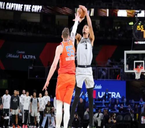 文班联合福克斯连续上分,不过杰威和卡鲁索很快追平。中段卡鲁索继续劈扣+上篮,卡斯尔带队反超比分后,亚历山大开始造犯规,文班亚马暴扣+瓦塞尔三分打停雷霆。杰威关键三分反超,文班亚马继续单打+抢篮板造杀伤。马刺拉开4分差距,最后1分钟,杰威继续打铁,文班亚马罚球不中给雷霆机会,亚历山大铁血追2分,卡斯尔两罚全中。雷霆最后10秒落后3分,两队点球战术,最终马刺111-109惊险击败雷霆,终结雷霆16连胜,马刺和尼克斯会师NBA杯决赛!